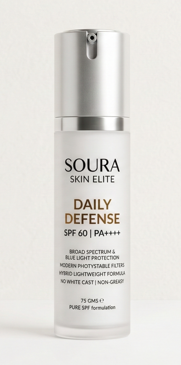 Designed for all skin types, this hybrid formulation utilizes advanced photostable UV filters that remain effective even under intense sun exposure. Whether you are in the city or outdoors, Soura Skin Elite ensures your skin stays protected, calm, and breathable.